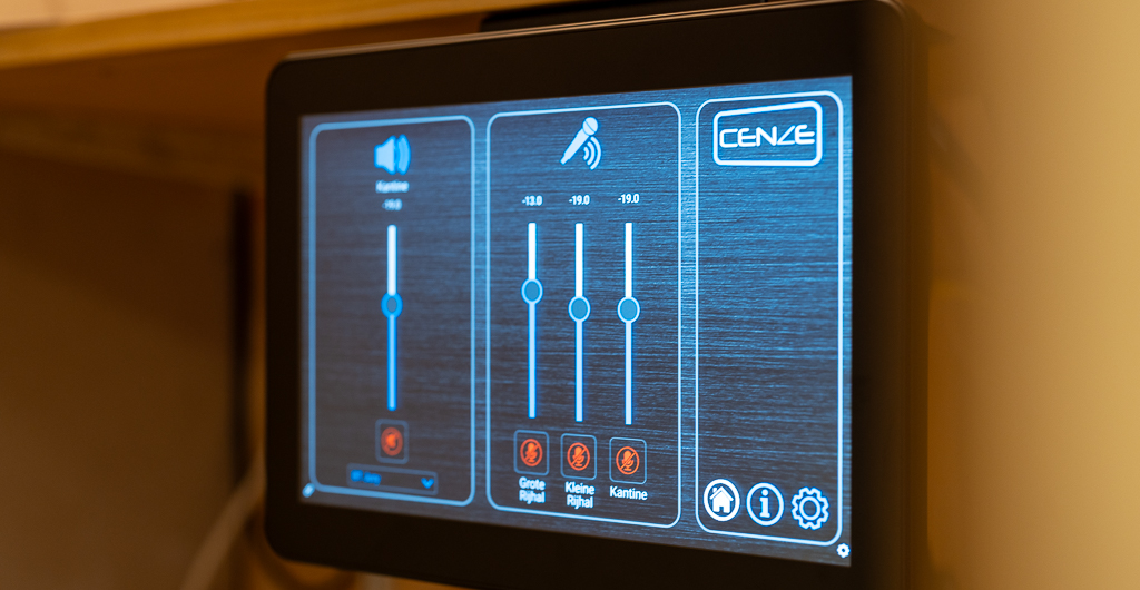 Dankzij ons Cenze bedieningsplatform is het geluid in de verschillende ruimtes eenvoudig te regelen. Vanuit de juryruimte kan het complete systeem bediend worden via een overzichtelijk Cenze touchscreen. Zo is het mogelijk om elke rijhal en de kantine afzonderlijk aan te sturen en het volume of de muziekbron per zone aan te passen.