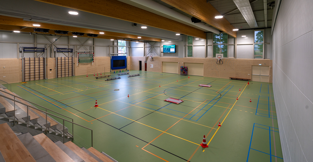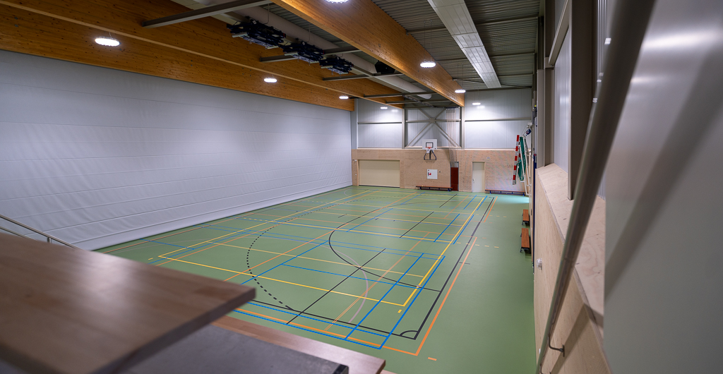 De nieuwe sporthal is voorzien van moderne faciliteiten en flexibele indelingsmogelijkheden. Door toepassing van verplaatsbare scheidingswanden kan de zaal eenvoudig worden opgedeeld in drie afzonderlijke zaaldelen. Ook de uitschuifbare tribunes bestaan uit drie delen, wat zorgt voor maximale flexibiliteit bij verschillende sport- en evenementenopstellingen.