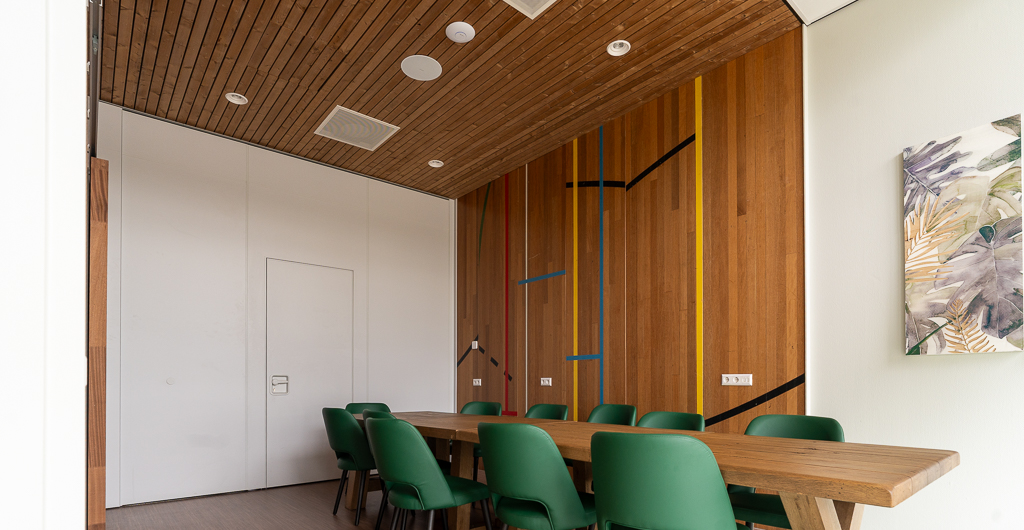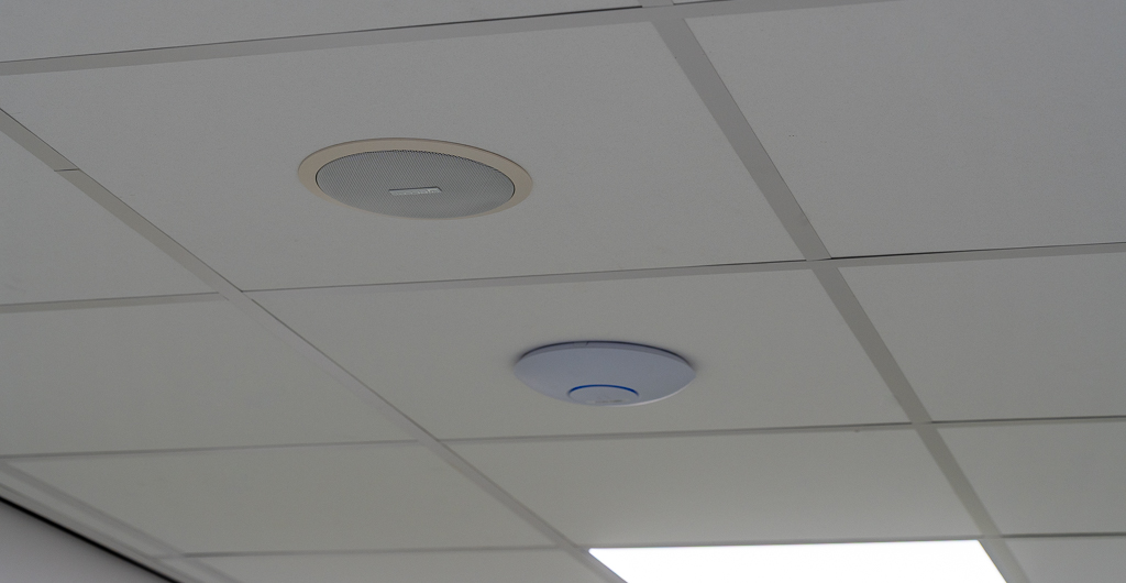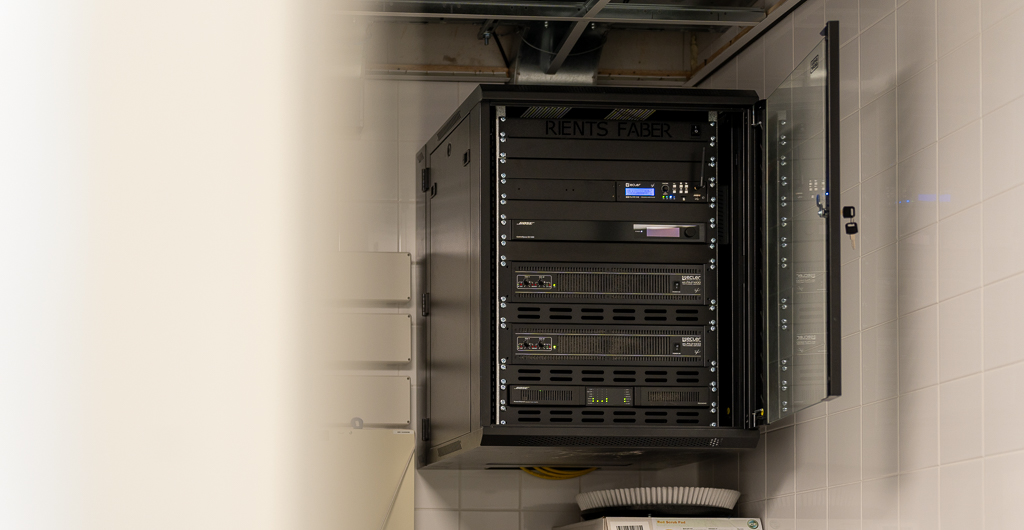 Geluidssysteem in de sporthal, sportkantine, multifunctionele ruimte en algemene ruimtes