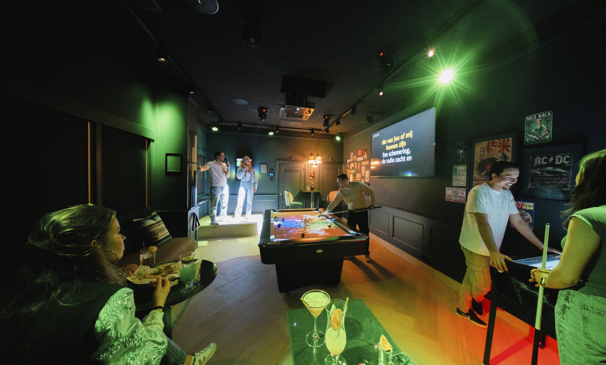 Deze unieke ruimte biedt een originele combinatie van muziek en spel. in de priveruimte met pooltafel en karaokesysteem daag je vrienden uit voor een potje pool of laat je je stem horen op de microfoon.