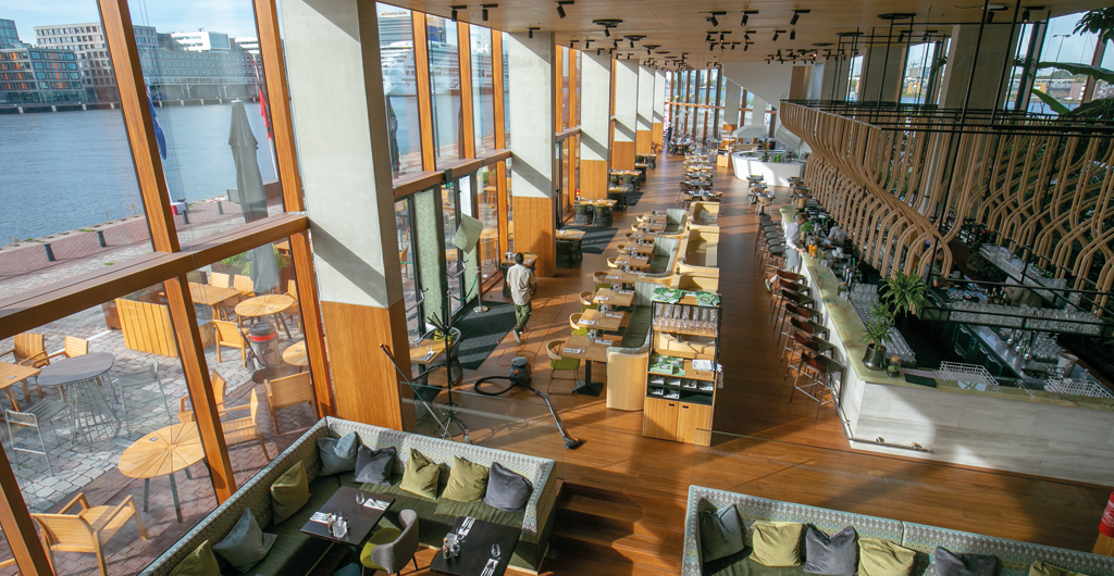 Op de 8e verdieping bevind zich de Malabar die uitkijkt over het IJ en de stad. Een ware beleving om hier s’avond een drankje te drinken en een dansje te wagen. De bar is daarom ook ingericht met een volwaardig club sound systeem, wat bestaat uit Bose RoomMatch 206 luidsprekers en subwoofers. Boven de bar is door ons een Pioneer Dj booth geplaatst, waarbij de Dj uitzicht heeft over het IJ en de dansende menigte. Naast de geluidsinstallatie zijn ook special LED spots gemonteerd, de Malabar wordt zo in de avond uren omgetoverd tot trendy skybar. De volledige installatie is wederom eenvoudig te bedienen met onze Cenze touchscreen applicatie.